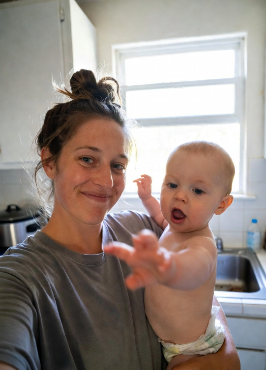 I finished the meatloaf. Mom's recipe. The onion soup mix. Caleb ate a full slice. Hazel ate purée. Ryan came home and I told him and he lifted me off the ground and spun me in the kitchen and Caleb said, 'AGAIN!' and Hazel said, 'MO!'